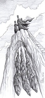 A sprawling city reveals itself to Beket, Hennie and Simone. A vague sensation of recognition, of familiarity flirts with the edge of their consciousness, as if the city was known to them. It is not Ptolus, it is not the City by the Spire, for this city lies in the shadow of seven peaks, seven spires rising high to the heavens above. The name almost comes back to them, but the girls' attention is suddenly diverted as the city is ripped apart by a forest growing at an alarming rate out of the streets, market places and buildings around.